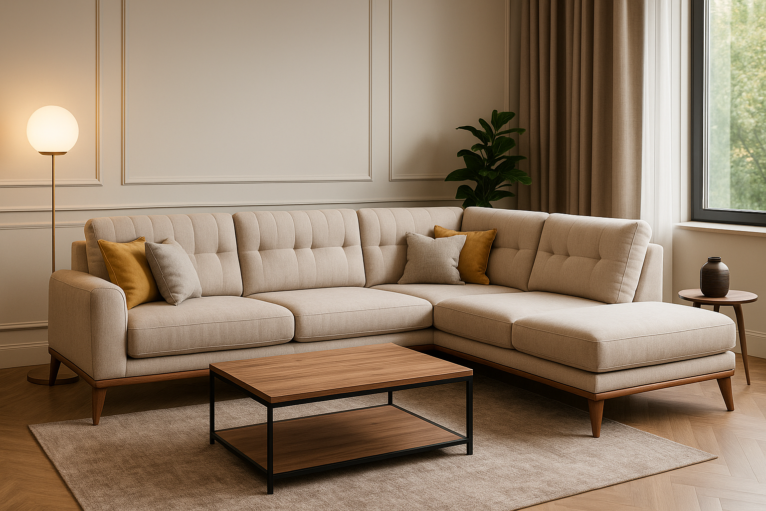Kaliteli kumaş kullanılan şık tasarımlı köşe koltuk
